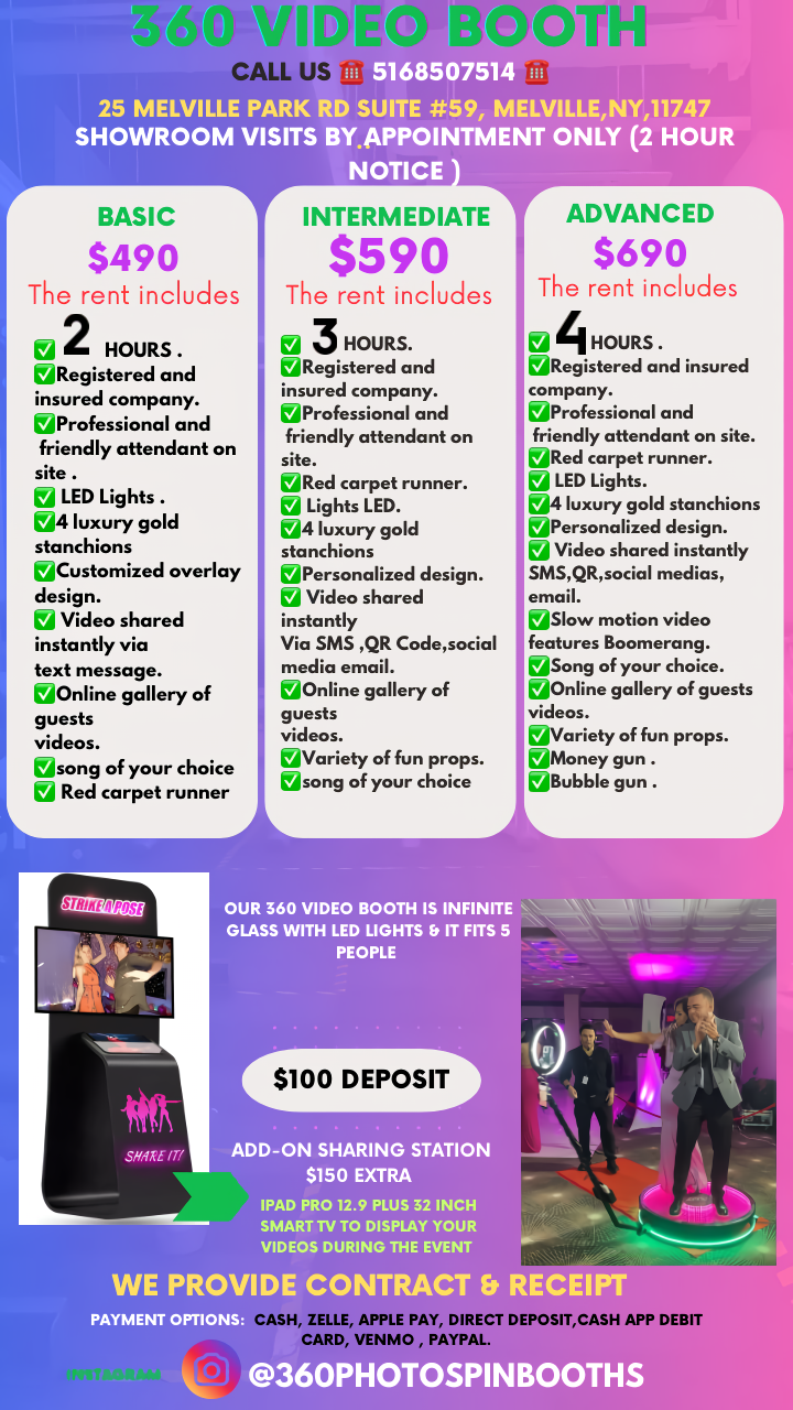EXCELLENT Based on 162 reviews Posted on Justin OhnigianTrustindex verifies that the original source of the review is Google. Did the 360 Photo Booth and it was an absolute blast. Edgar was great to work with. Great communication, adjusted and customized the video perfectly and did it the whole time with a smile. Highly reccommend.!Posted on Yenny SantanaTrustindex verifies that the original source of the review is Google. Excelente servicio!Posted on Mirna GomezTrustindex verifies that the original source of the review is Google. Yo quedé muy feliz y complacida con su servicio, Jessica es muy amable, flexible, y muy puntual.!! Cumple con el tiempo acordado sin ningún problema, muy responsable y atenta. ⭐️⭐️⭐️⭐️⭐️ Gracias Jessica, muy feliz y satisfecha con su servicio.Posted on Susi EscobarTrustindex verifies that the original source of the review is Google. Yesica y su esposo hicieron un excelente trabajo en el evento de mis hijas. Quedé muy satisfecha con el Photoshop y el 360 excelente servicio, lo recomiendo mis hijas, sus amigas y todos nuestros invitados nos han dicho de qué ellos son excelente personas motivadoras en las fotos en el video dinámicos pasaron todas nuestras perspectivasPosted on Angela OstorgaTrustindex verifies that the original source of the review is Google. This experience was so amazing and beautiful 😍Posted on José LemusTrustindex verifies that the original source of the review is Google. Excelente servicio , cumplieron todas mis expectativasPosted on Hazel HernandezTrustindex verifies that the original source of the review is Google. Muy profesionalPosted on Iris RadillaTrustindex verifies that the original source of the review is Google. 100 % recomendados, son muy agradables, buen ambiente, amables, trabajo profeccional, sin Duda los volveria a contratar para mi siguente fiesta!!Posted on Jyothi SinghTrustindex verifies that the original source of the review is Google. I hired 360 Photobooth and Photo Booth for my daughter’s baptism and first birthday party, and I couldn’t be happier with our decision! From the very beginning, Edgar was incredibly professional, kind, and eager to work with us. He even invited us to his showroom, showed us examples of past work, and made the entire experience feel personal and customized. They created a beautiful custom design for our photobooth printouts to match our theme, and even brought themed props to take it to the next level. Edgar, his wife, and son were so warm and welcoming — they made sure every guest felt comfortable and excited to use the photobooth. Everyone had such a great time, and we received so many compliments! Highly recommend — 10/10! Thank you for making our event so special!Posted on LIDIA CAGLAYANTrustindex verifies that the original source of the review is Google. ⭐⭐⭐⭐⭐ 5/5 – Amazing Experience! We rented the 360 machine for our event, and it was a HUGE hit! The setup was quick, the quality of the videos was crystal clear, and the slow-motion effects made every clip feel like a music video. Guests of all ages loved it and kept coming back for more. The staff was friendly, professional, and made sure everyone felt comfortable on the platform. The instant sharing option was a great touch—it let everyone post their videos right away. Definitely worth it for making unforgettable memories!Verified by TrustindexTrustindex verified badge is the Universal Symbol of Trust. Only the greatest companies can get the verified badge who has a review score above 4.5, based on customer reviews over the past 12 months. Read more